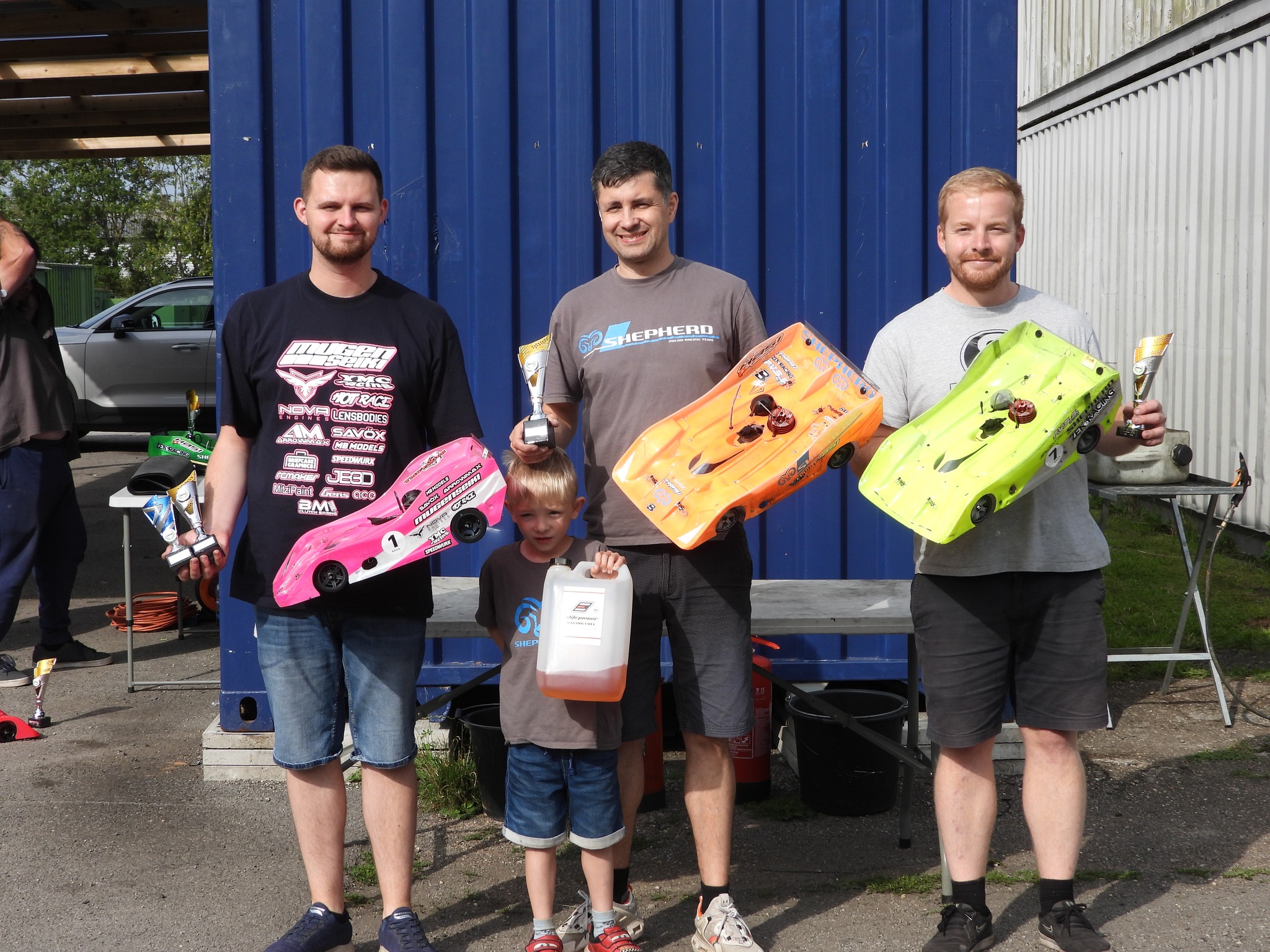 In the electric class A-final the top two were out front by some distance as Mark Green continued to dominant taking pole and two out of three leg wins from Michael Walton who took one win for second overall both driving the Serpent 990e evo chassis, closer battles were going on between Mark Boothman, Jack Garrett-Lines and Jamie Goodall. Mark in the end taking the final podium position for Shepherd. Meanwhile in the electric B-final Nigel Philpott took two wins to give him the overall win from Joe Diacono and Paulo Fernandes.