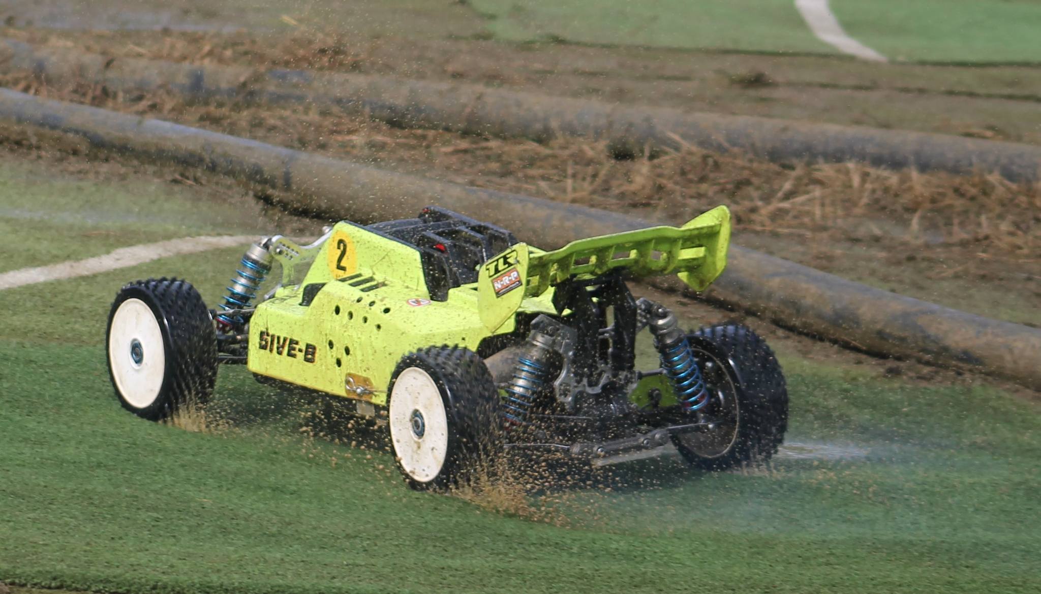 2 finals left, the tack was drying even more and now it was the time of the Short Course trucks. Ian Oddie led the pack of the grid and was being challenged closely by Tayler Letchford in the opening laps. Zach Whittleston and Jack Keatley were battling it out for P3. After 3 mins, Ian Oddie made an unexpected pit stop for a disconnected steering rod which gave Taylor the lead and now Zach and Jack battling for P2. Ian was however on a mission and with some of the fastest laps of the weekend was climbing his way back through the field. The fight for P2 ended after 6 mins when Zach had to retire with a poorly engine giving Tayler and Jack a clean run to the finish, but the drama wasn’t over. Ian managed to catch Jack for P2 before Jack had to retire the car due to a damaged wishbone. Could Ian catch Tayler? Simple answer, no. Another pit stop was needed to reconnect the steering linkage again which ensured Tayler took the win with a very consistent drive, Ian in P2 and Andrew Stephenson in P3 and his first national podium and 1st place clubman.